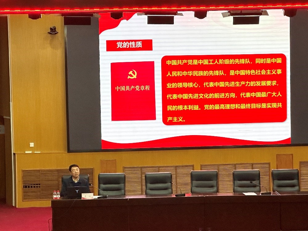 开班仪式结束后,贾江以《党的性质、最高理想和根本宗旨》为题做了培训班第一讲。他从“党的性质与宗旨”、“马克思主义群众观”、“我党历届领导人的群众观”、“党的宗旨和中国特色社会主义事业”等四个方面展开讲解,详细介绍了中国共产党的诞生与发展历程,讲述了中国共产党的性质和宗旨,回顾了中国共产党取得的伟大成就,阐释了中国共产党人精神谱系,科学回答了 “为什么要加入中国共产党”等问题,加深了学员对党的认识和理解,激励学员努力学习,不断提高个人思想觉悟,为早日成为一名合格的共产党员而不懈奋斗。