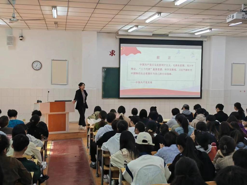 为进一步端正广大入党积极分子的入党动机,切实做好入党积极分子的培训教育工作,10月20日中午,bat365在线中国官网登录入口2023年第二期入党积极分子培训班第五讲《党的指导思想》专题党课在英才校区E209教室举行。本次党课由学生第三党支部组织委员王萍老师主讲。
