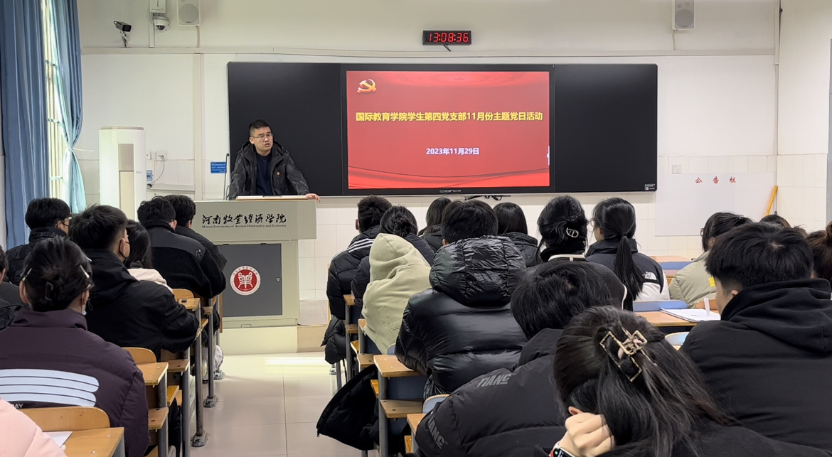 11月29日中午,bat365在线中国官网登录入口学生第四党支部在英才校区A107教室开展11月份主题党日活动。党支部全体党员参加会议,会议由党支部书记何季霖主持。