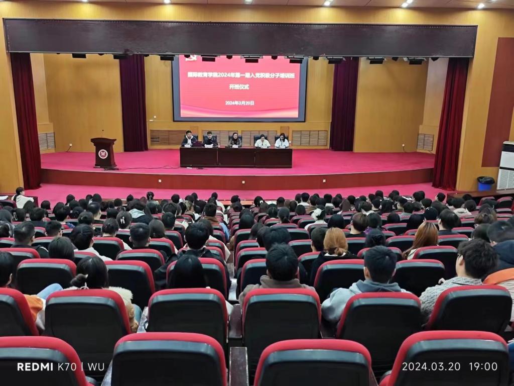 为深入学习习近平新时代中国特色社会主义思想,切实做好新时代党员教育培训工作,提升党员发展质量,3月20日晚,bat365在线中国官网登录入口在英才校区学术报告厅举行了2024年第一期入党积极分子培训班开班仪式。院党委副书记李江红,团委副书记侯丁琳、何季霖,学生党支部书记滑斌、侯思琦及本期入党积极分子培训班全体成员参加开班仪式。仪式由侯丁琳主持。