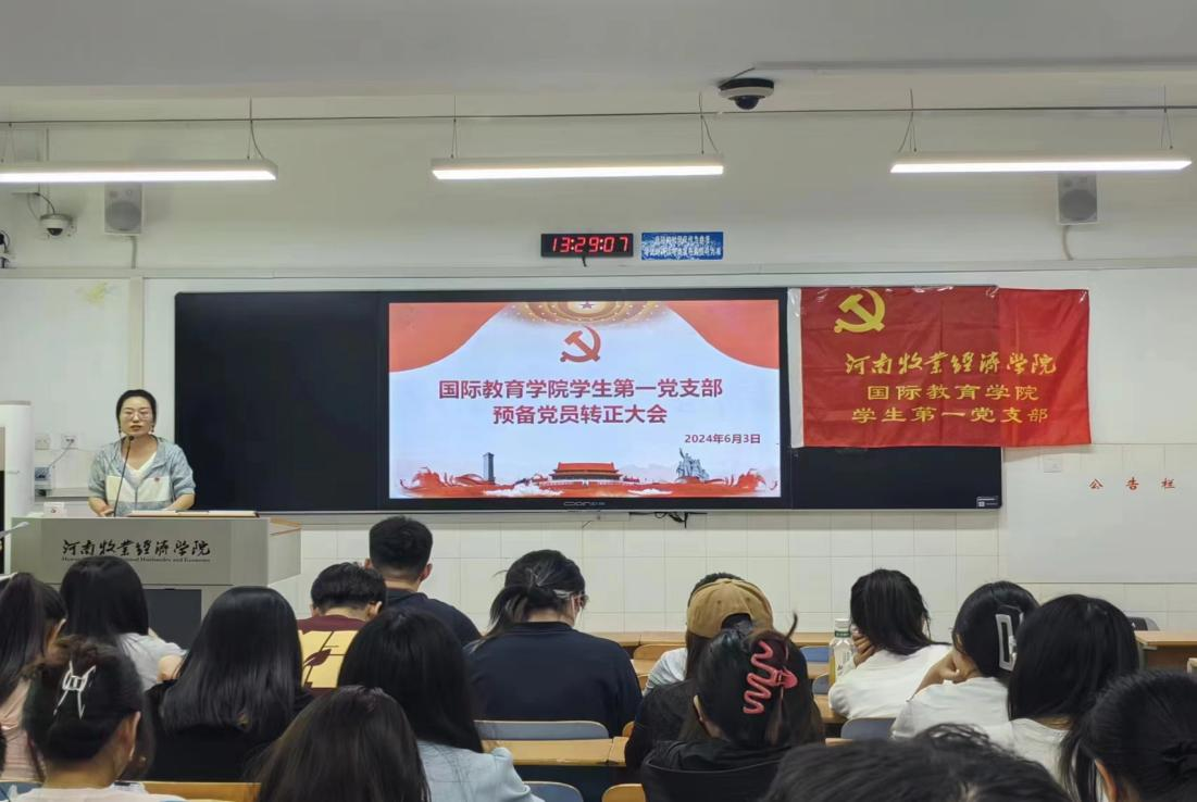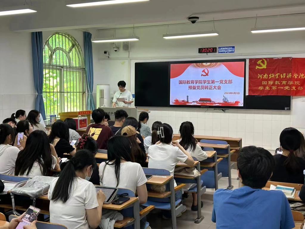 6月3日下午1点,bat365在线中国官网登录入口学生第一党支部在A115教室召开2024年上半年预备党员转正大会,此次会议由支部书记侯丁琳主待,一支部全体学生党员参加。