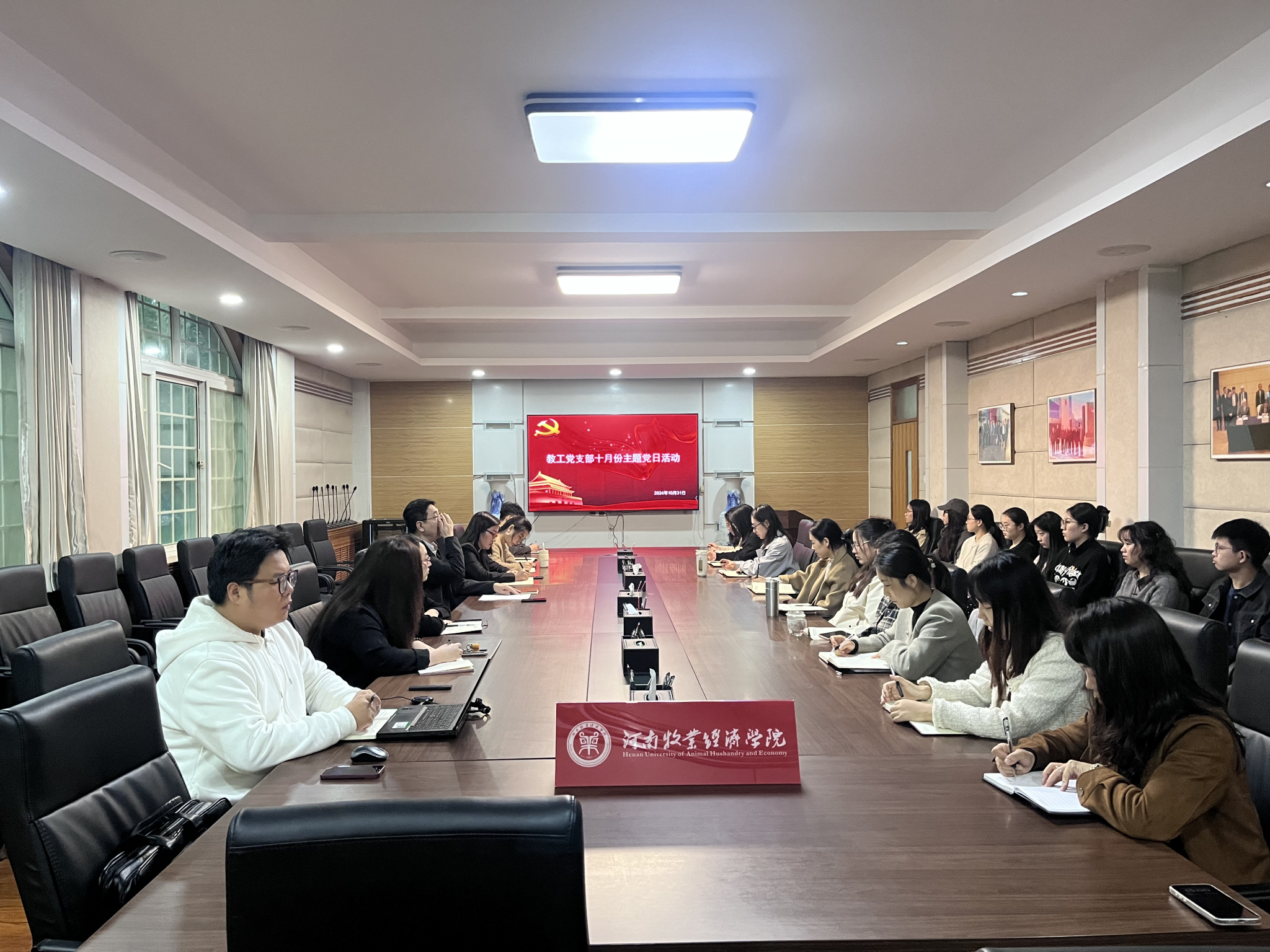 10月31日下午,国际教育学院教工党支部在学院会议室开展10月份主题党日活动,活动由支部书记李江红主持,支部全体教工党员参加。