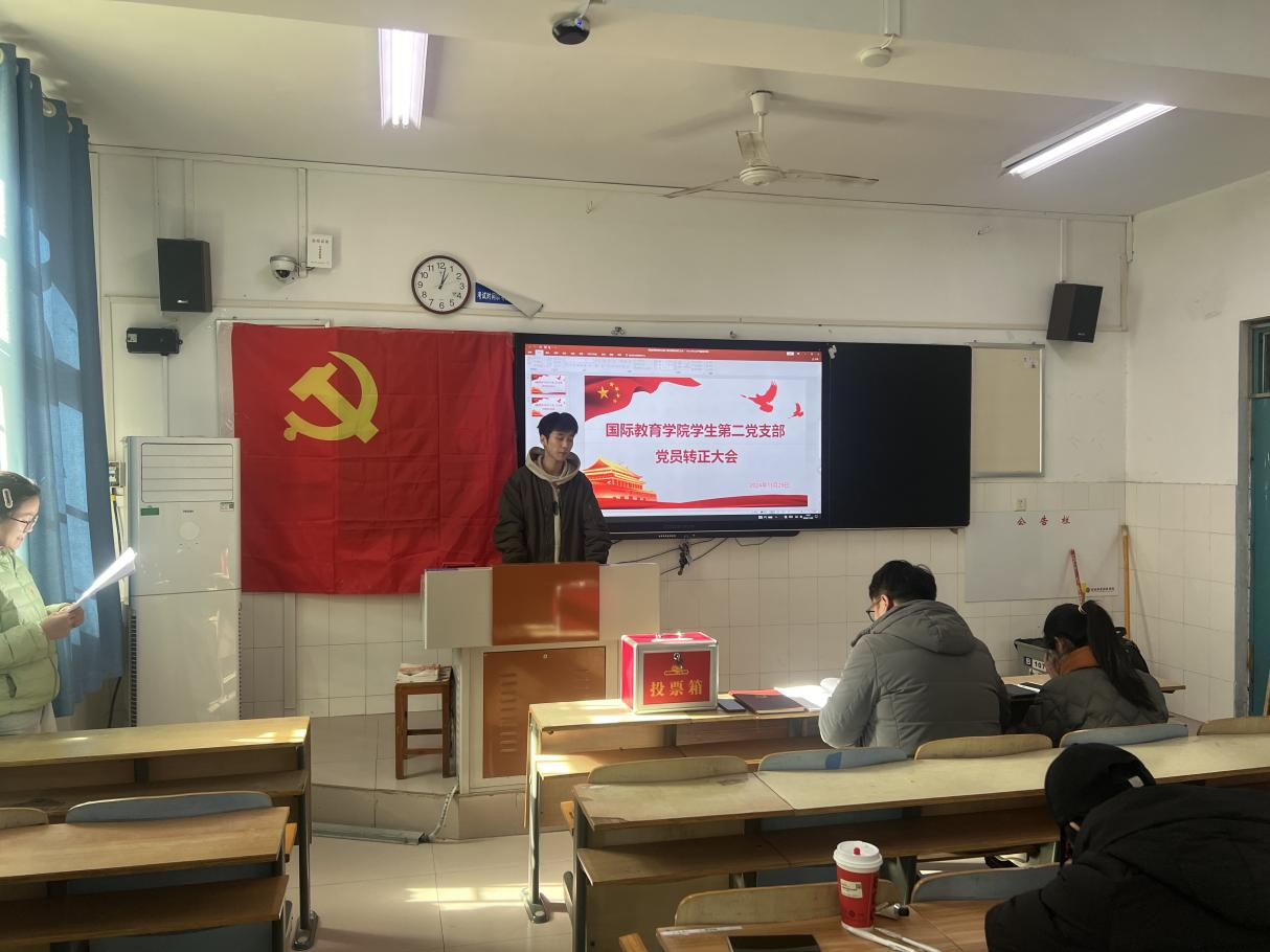 1129日中午12点半,bat365在线中国官网登录入口学生第二党支部在B107教室召开2024半年预备党员转正大会,此次会议由支部书记滑斌主持,二支部全体学生党员参加。