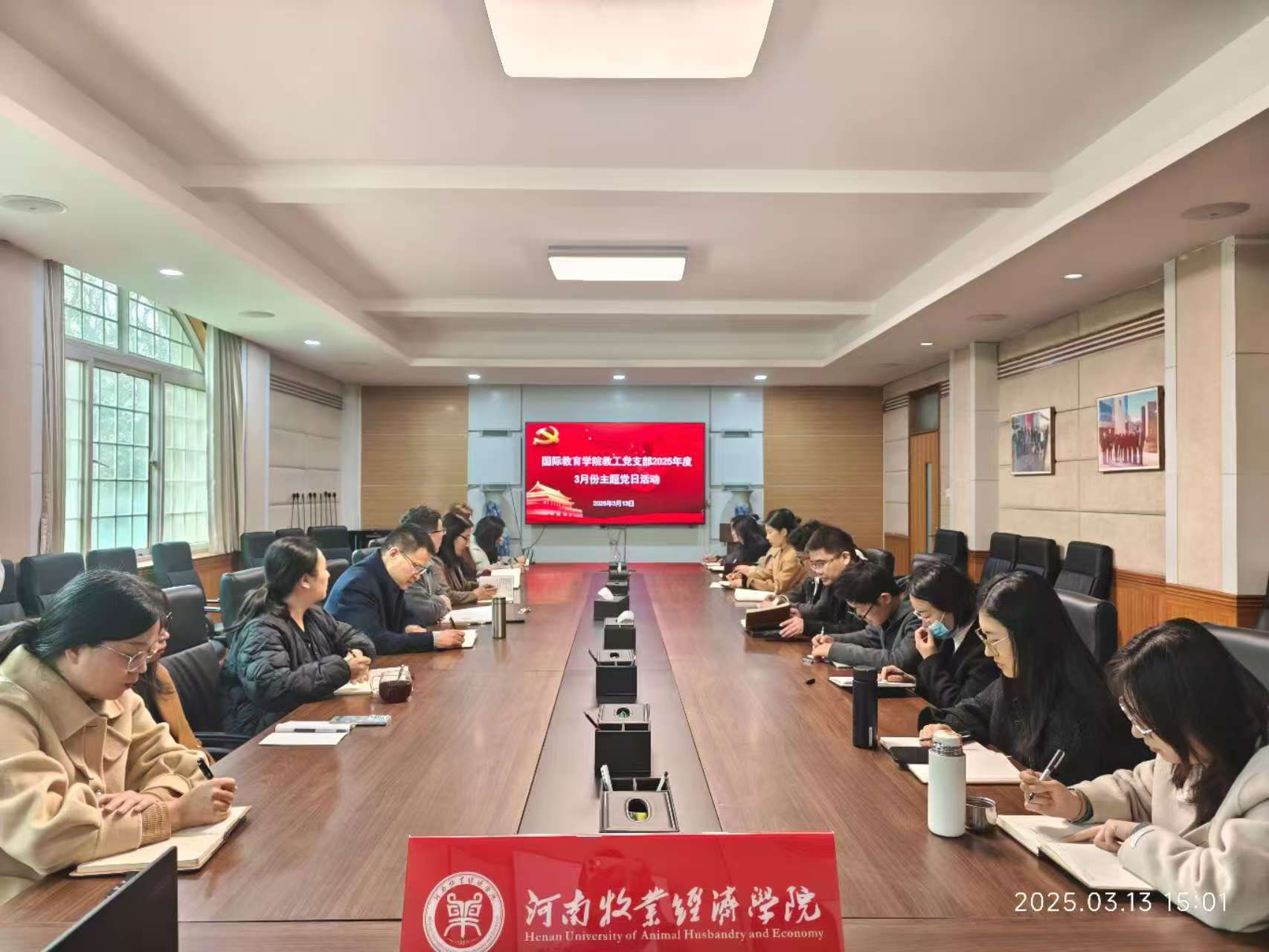 313日下午,bat365在线中国官网登录入口教工党支部在学院113会议室召开2025年度3月份主题党日活动,支部书记李江红主持会议,支部全体党员参加会议。